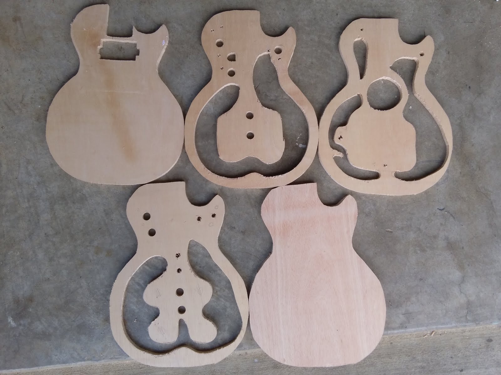 What's the reason for that big chunk left in the middle of each layer? Well we need some wood for the bridge and tailpiece anchors to grip, and really don't want those cracking, so I gave at least an inch of "safety wood" around each of those holes, hence the big middle section.